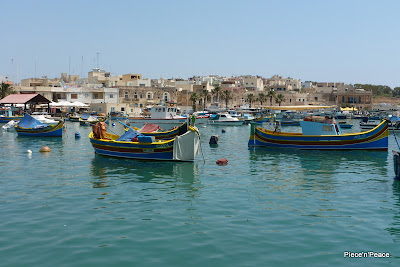 Today is the last full day of my time in the Maltese islands. Tomorrow will be packing, checking out, getting to the airport, waiting at the airport for hours... why didn't they work harder on the teleporting thing they had in Star Trek? Anyway, today we visited the fishing village of Marsaxlokk and had a lovely mooch around looking at the fishing boats and a small tourist market. Local weaving and local lace claimed the labels, hmm, I wouldn't put my money on it!